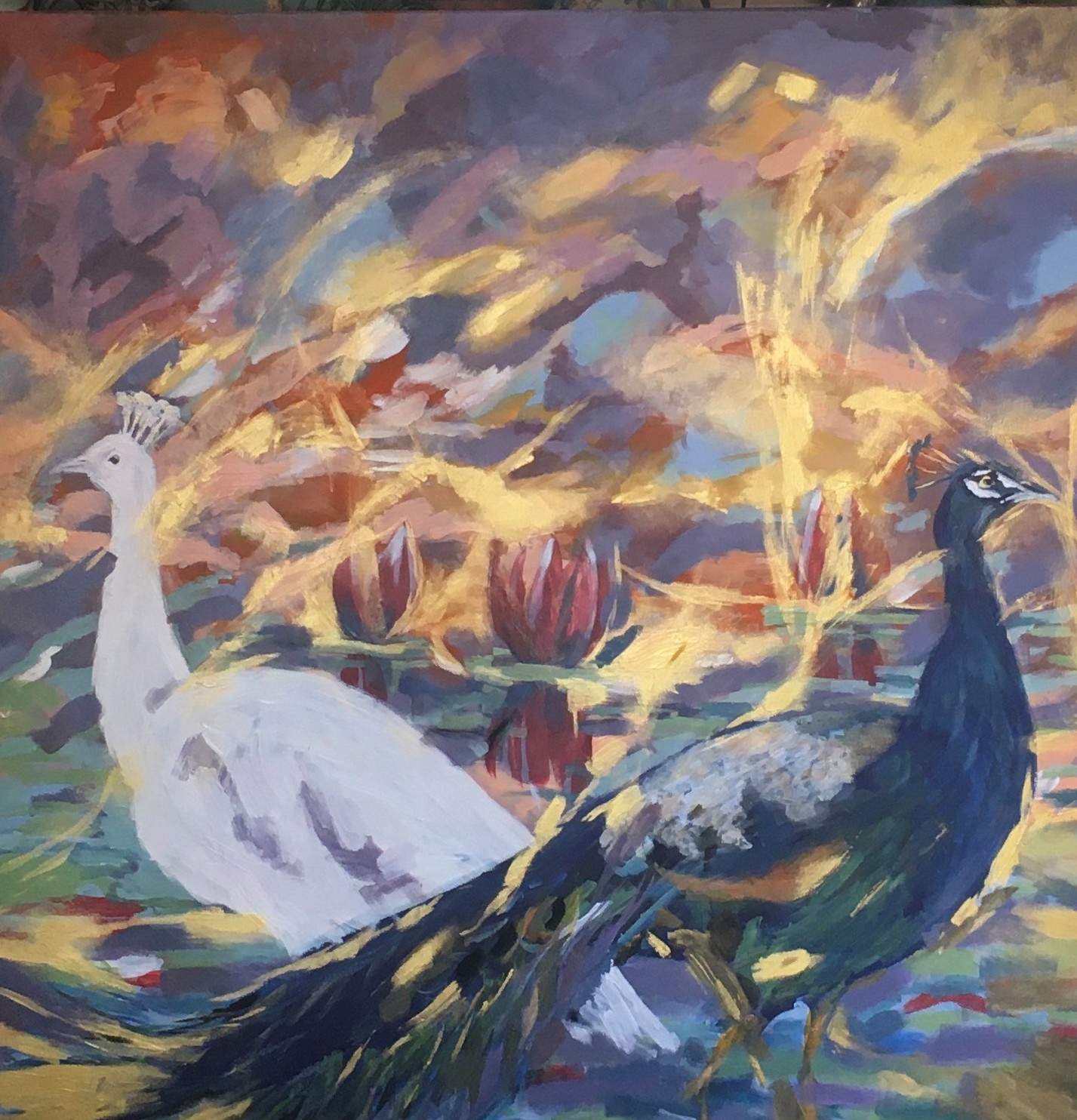 The painting has possible effects of shifting perspectives, gently suggesting the existence of multiple vantage points, multiple realities. As a metaphor that’s useful for humanity – encouraging tolerance of differences.