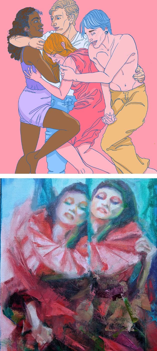 Hannah Singleton is a portrait and figurative artist based in West Sussex. Hannah is fuelled by inventive ways of looking and depicting gaze, power and agency. This oil painting depicts what appears to be a mirror image of a person but on closer inspection, there are subtle differences in the angle, which is tilted, resulting in slightly altered portrayals. The hues are also slightly varied between the figures. There is visual intrigue – a potential conversation between viewer and painting, perfect for the objective behind the Dwell initiative.